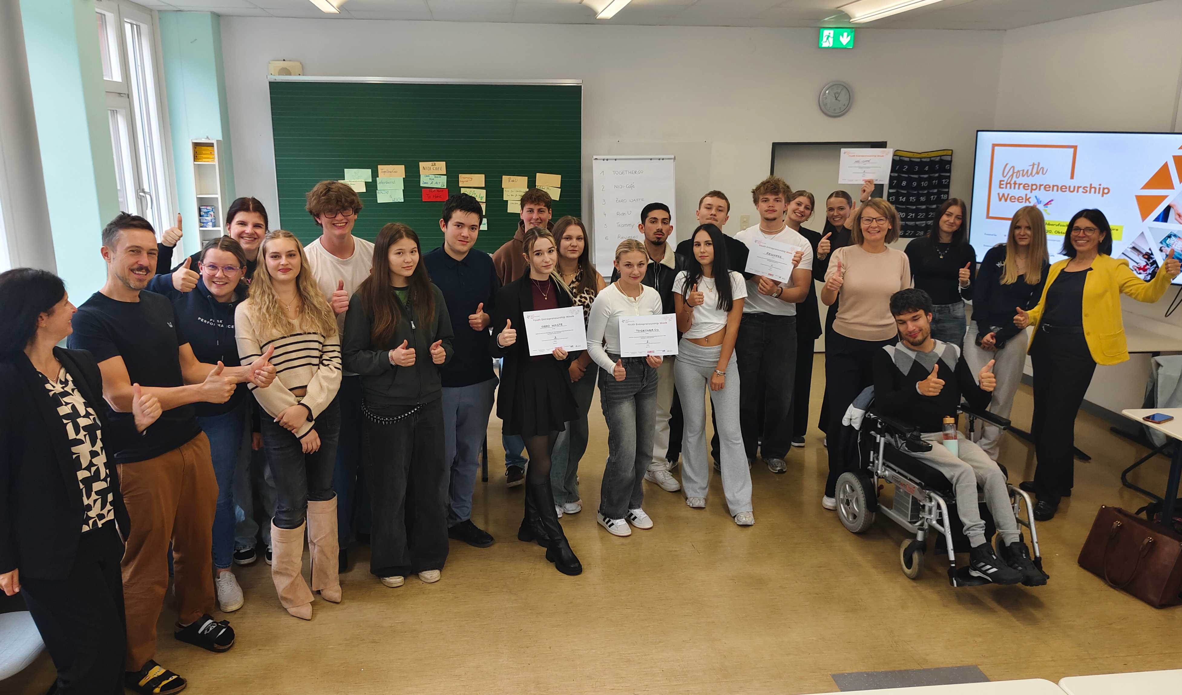 Engagement als Trainerin im Schulprojekt "Youth Entrepreneurship Week", in der Schüler:innen lernen, wie eine Idee unternehmerisch erfolgreich umgesetzt werden kann. Ein großes Lob an 29 Schüler:innen der Berufsschule Handel und Büro in Innsbruck, die sich mit Hingabe und Ausdauer Problemen unserer Zeit gewidmet und an umsetzbaren Lösungen gearbeitet haben. BRAVO!