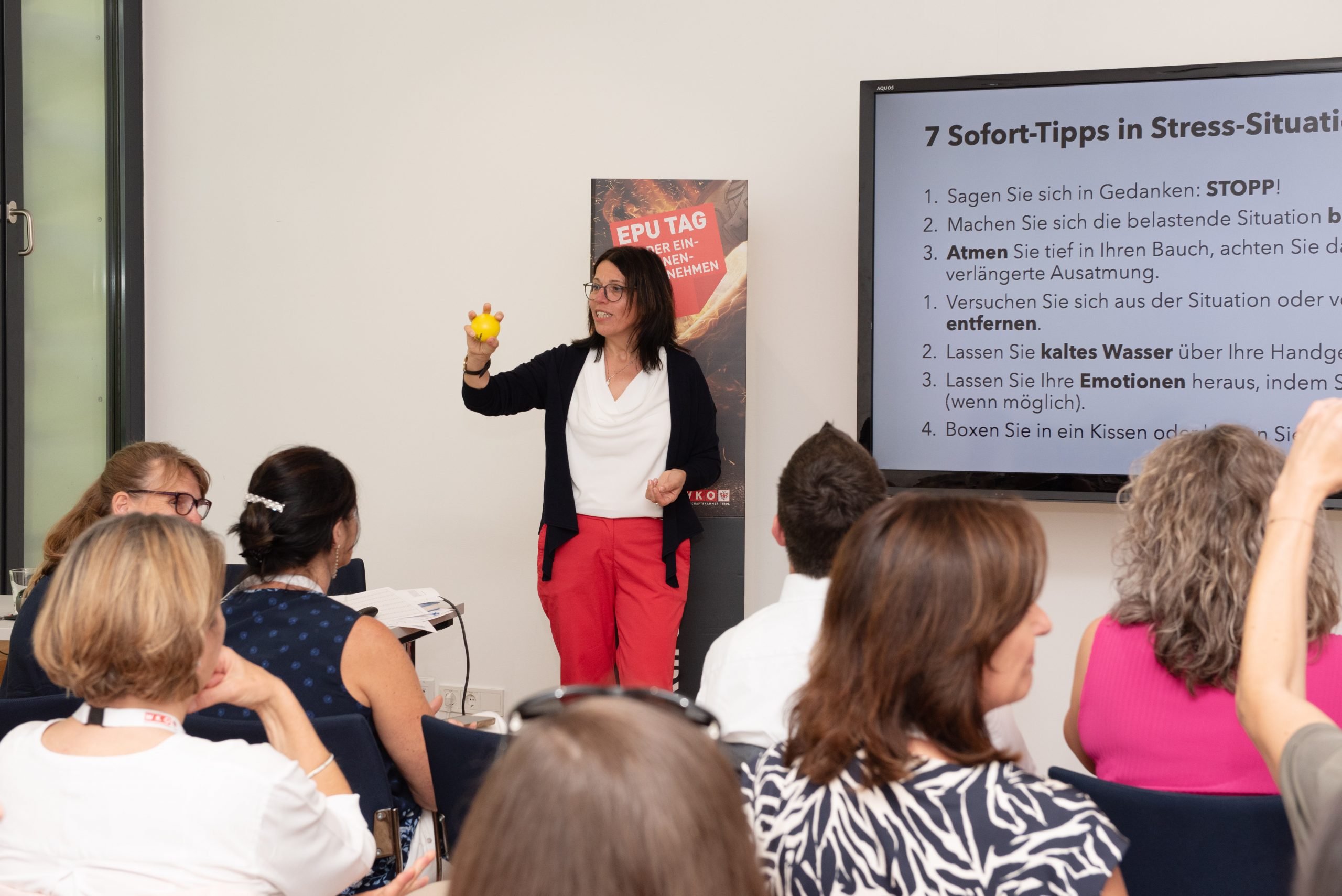 "Energiegeladen durchs Leben mit gesunder STRESS-Bewältigung" - so lautet der Titel der Keynote. Gerade Ein-Personen-Unternehmen haben viele verschiedene Aufgaben zu stemmen. Neben der eigentlichen Tätigkeit stehen Akquise, Marketing, Buchhaltung, Netzwerken, Weiterbildung am Programm. Das kostet Energie und kann in den Dauerstress führen.