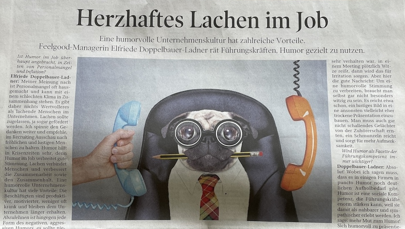 Zuerst die Arbeit, dann der Spaß! Passen Humor und Lachen ins Arbeitsumfeld? Auf jeden Fall! Im Interview in der Tiroler Tageszeitung erzähle ich über die positiven Auswirkungen für Unternehmen und Mitarbeiter:innen und wie Humor gezielt eingesetzt werden kann.